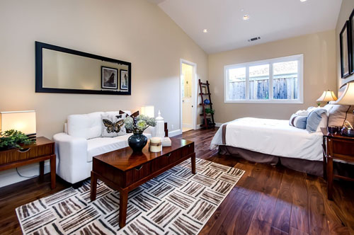 Master Bedroom- with seating area, large walk in closet with organizers opening to private covered terrace.