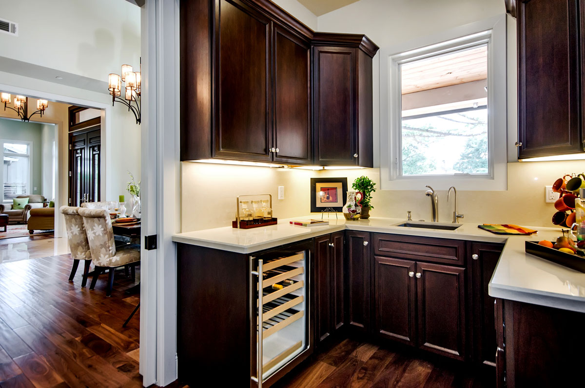 Butler's Pantry--- Cherrywood cabinetry with Caesarstone Counters, sink and 48 bottle wine cooler.