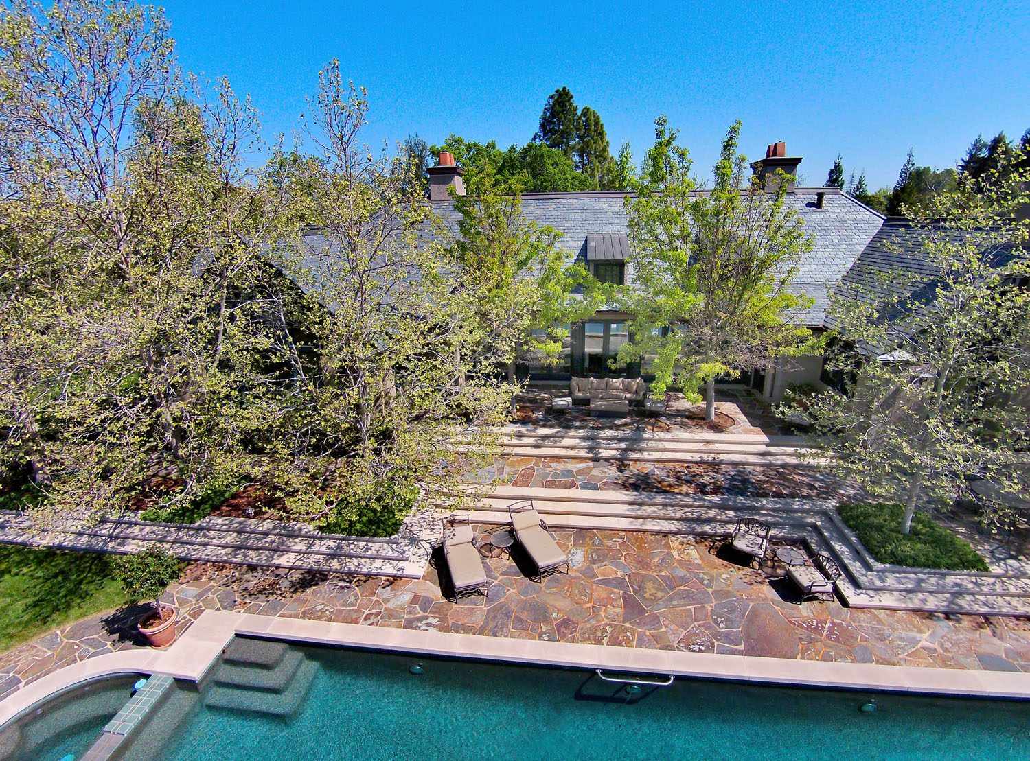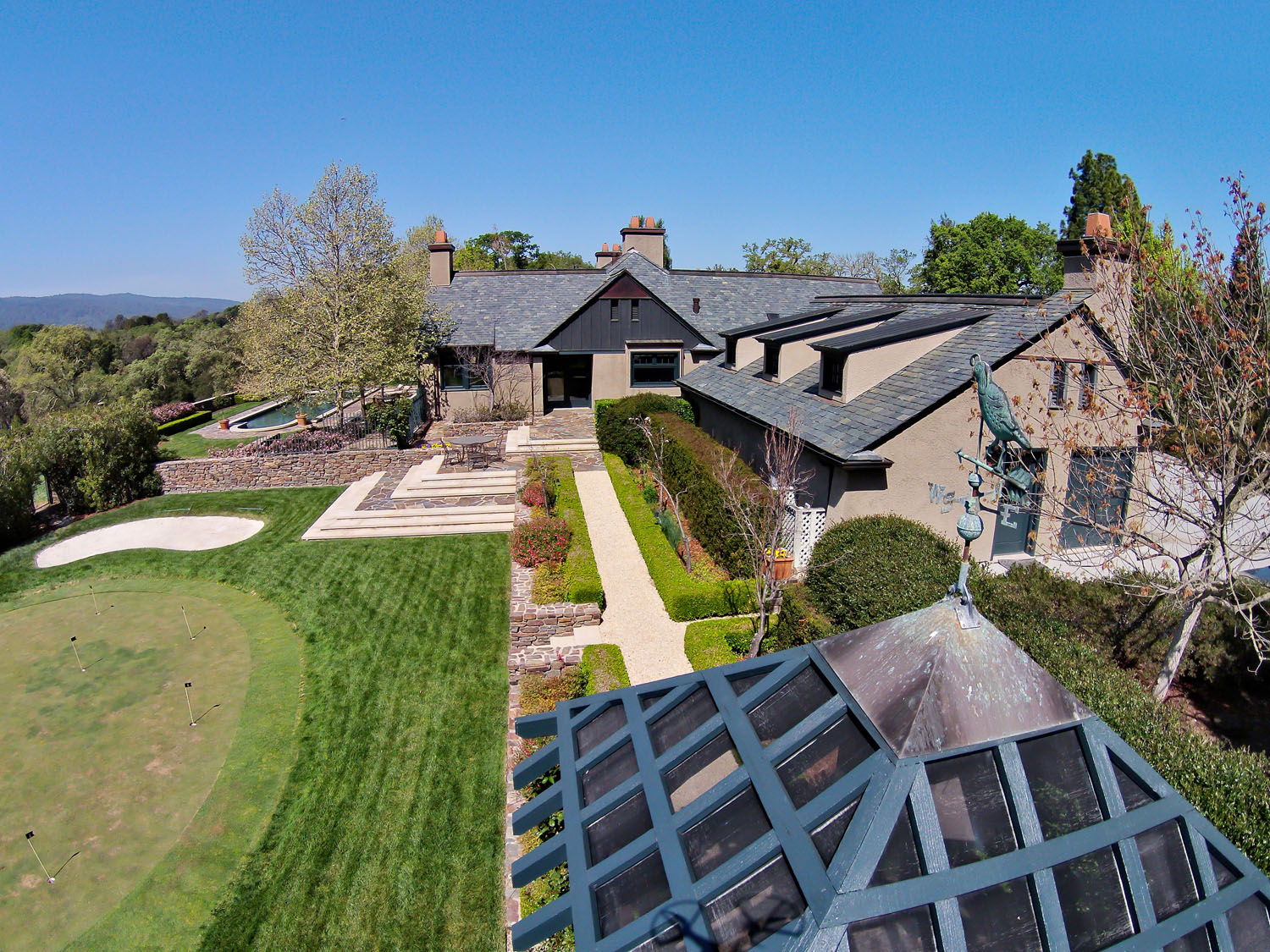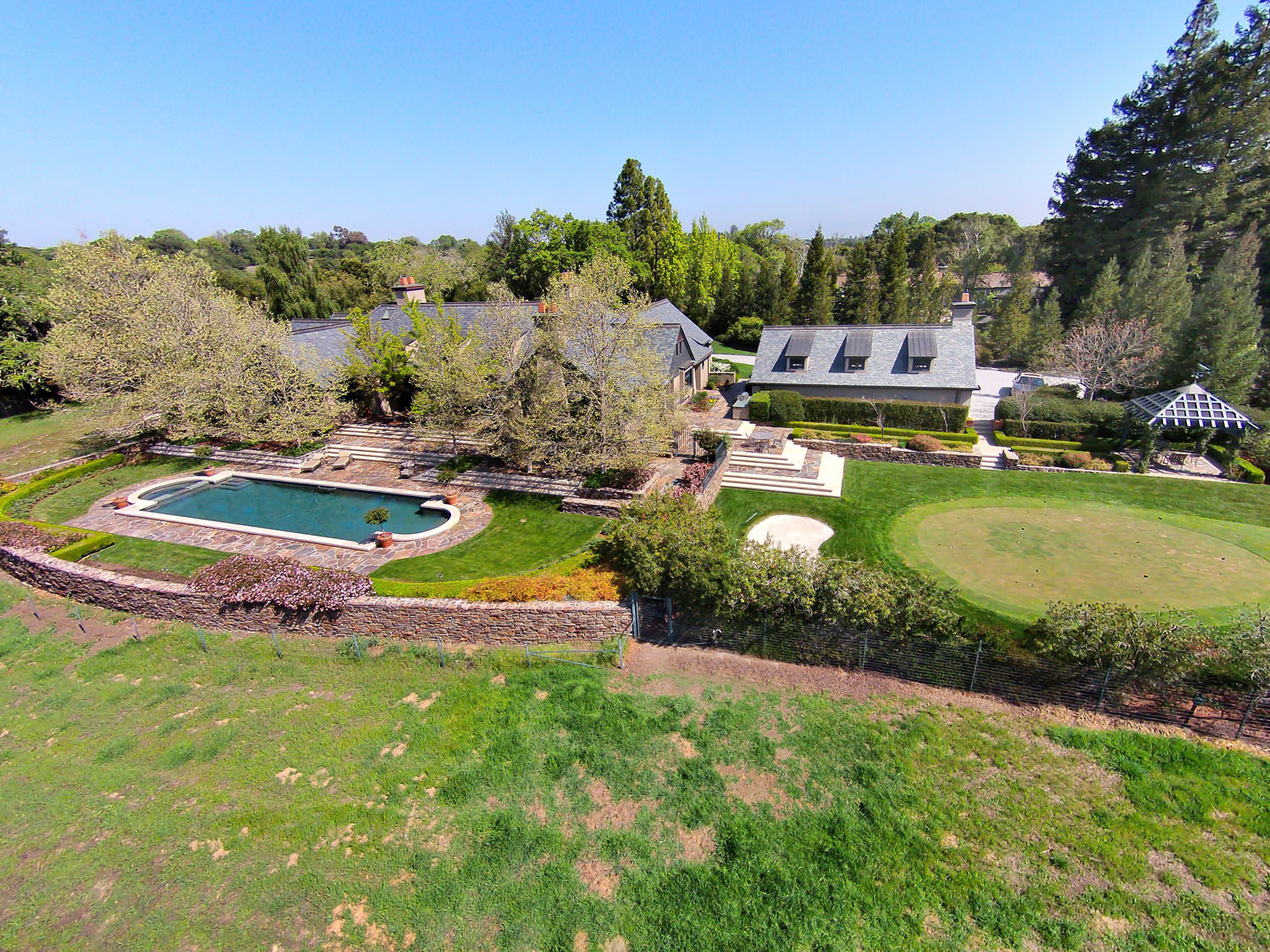 Approx. 7 acres of mature landscaping and resort like grounds with outdoor kitchen, pool, and putting green